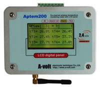 Aptem200-AS64支持64点无线传感器接入,带有LCD显示屏,显示温度和信号强度,仪表设计为可盘装或壁挂。