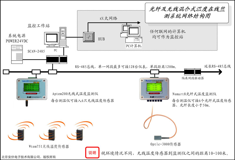 用于高压开关及母线接点运行温度实时测量的温度传感器,用于强电磁场环境。